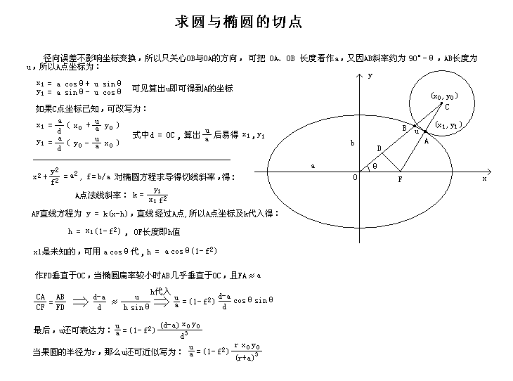 五、贝塞尔坐标的其它问题 1、求贝圆的短半径: 从贝塞尔基面的定义知,贝塞尔基面与椭球形地球的交线为椭圆,下文称贝圆。贝圆的长半径在x轴,长度为地球赤道半径a。短半径在y轴,如何求其大小呢?我们引入下图,这是地球的一个剖面图,贝塞尔坐标的y轴落在剖面上,OD正是贝圆的半短径b2,今设赤道半径为a,南北极半径为b。